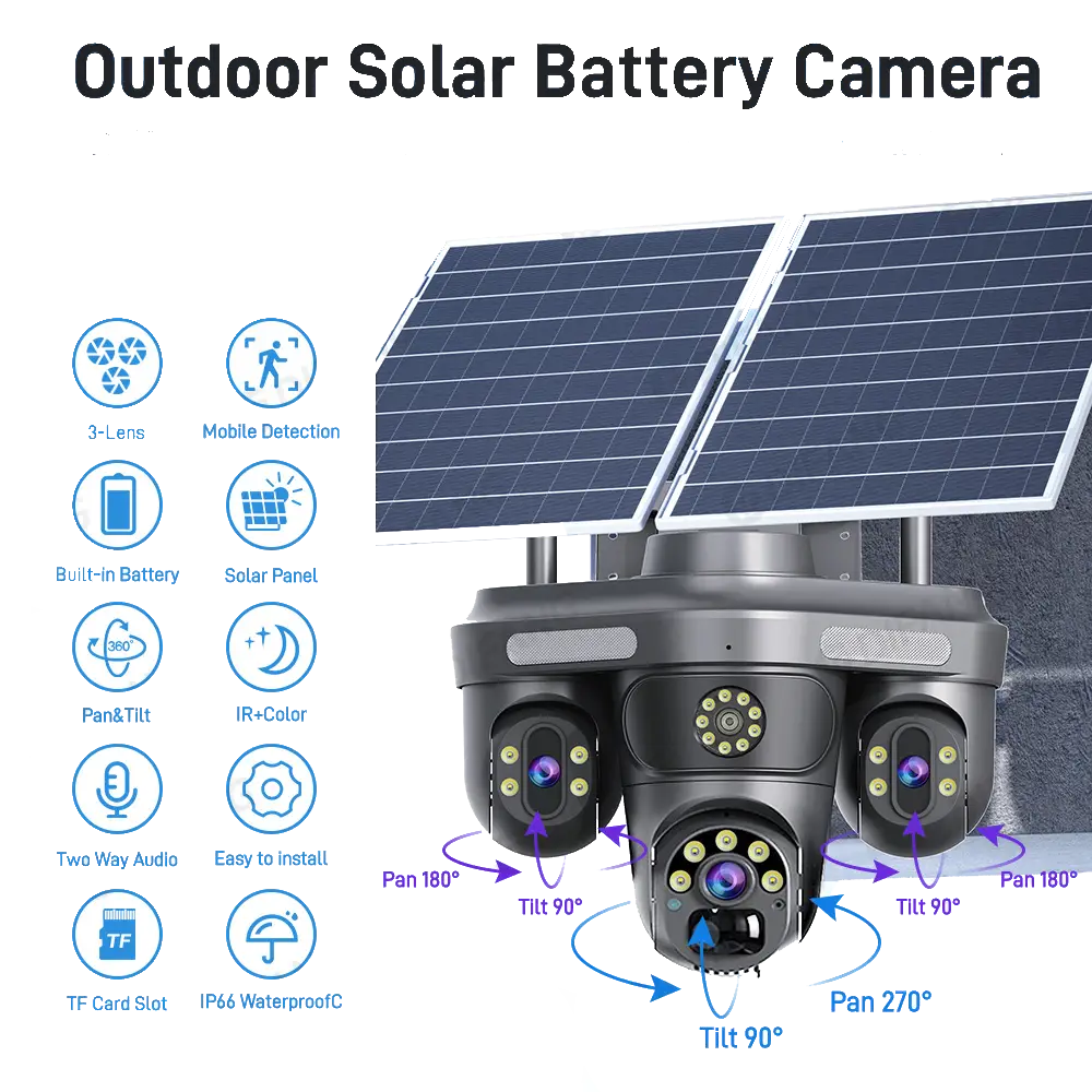 - پوشش کامل محیط با سه لنز چرخان: جلوگیری از نقاط کور و افزایش امنیت.